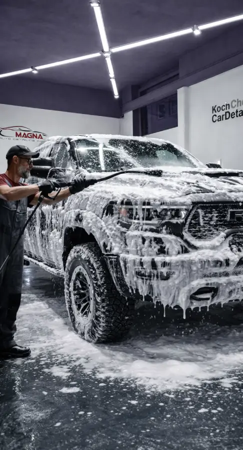 Premium pranje automobila u Magna Detailing studiju je trofazno ručno pranje po Koch-Chemie protokolu sa konzervacijom lakirano-farbane površine. Format je pogodan za redovno održavanje i očuvanje idealnog spoljašnjeg izgleda vozila.